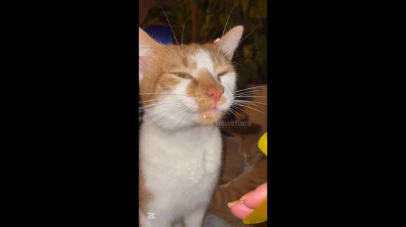 "Thirsty? Nah, just fancy. Watch as this sophisticated kitty refuses to drink water the boring way a…