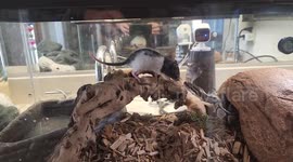 The footage, shot last month at a home in Los Angeles County, USA, shows the two playing with a piece of cloth while the little girl laughs uncontrollably.