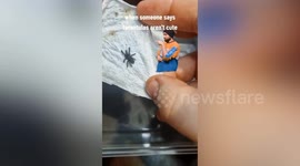 Footage of a massive spider coming "out to say 'hello'.