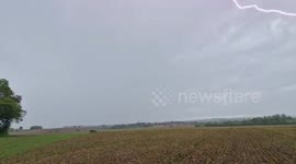 Stunning footage of a cloud-to-ground lightning strike captured at close range in Manchester, UK.