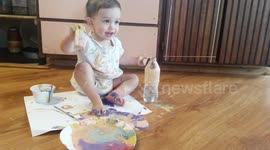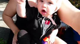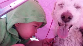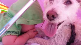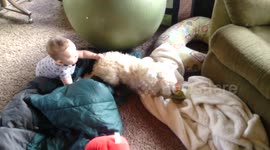 Baby in Clean White Clothes Digs in Dirt + Dog