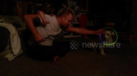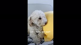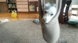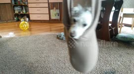 At Nana's house in Sequim, WA, 14-month-old Tzivia digs her hands in the dark dirt. Our rescue dog Lupin comes to see what's going on.