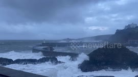 This is the moment huge waves battered a house in the UK south-west coast as Storm Emma ripped through Cornwall.