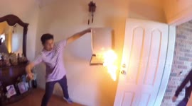 Corner of Regent Ave West in Winnipeg City, Manitoba, Canada in Hudson Bay parking lot where a crazy car fire erupts.