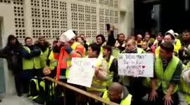 Dozens of yellow vest protesters gathered on Saturday in the town hall of Le Havre where they sang the French national anthem.