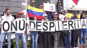 Footage captured on Monday (March 11) shows protesters holding placards with a message reading 'ONU, despierta' (United Nations, wake up) and colourful Venezuela’s flags.