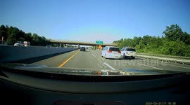 This is the moment a US driver narrowly avoids crashing into a car that pulls out in front of him on a freeway near Scottsdale, Arizona.