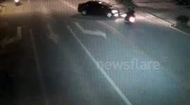 Stolen scooter riders wearing balaclavas mount narrow pavements to avoid cars and bus
