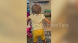 Mila fighting the inflatable cone