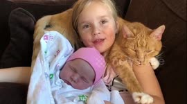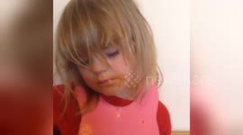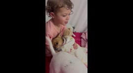 A young 4-year-old girl sweetly sings to sleep her baby squirrel