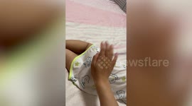 Filmed on September 7, the little girl is seen holding and cuddling the baby squirrel as she sings softly to it.