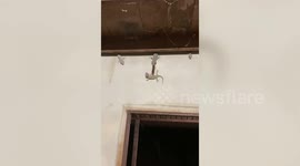 Insect enthusiast Alabaster Braxton said she was going to put away some towels in the laundry room of her house in Michigan when she saw the long-legged thief with the food in its pincers on July 31.