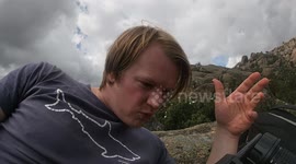 Ewan and his three friends Serenity, Armador and Kelly watch with awe and fear. This is an extremely rare and raw peace of nature to witness but is also nerve racking watching the mountain goats barely make it to the other side of the boulders.