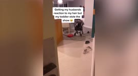 That’s cute 18-month-old kid but they look like hairdo from home alone, attempt to claim his TV chair and does the splits and safely dismounts, or does he?
