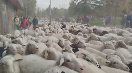 Families clean the snow from access to schools in Madrid 17th January, 2021.