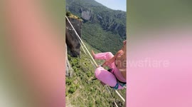 The filmer told Newsflare: "Philippe crossed without a safety harness which would hold him to the strap if he fell."