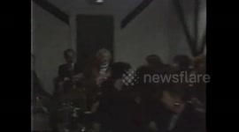 Explosive popping sounds can be heard coming from the car as firefighters try and tackle the fire. Two bystanders are heard saying "how are the brake lights still on?" and the other responding "well it is an Audi" and remarking on the bravery of the fire crew.
