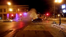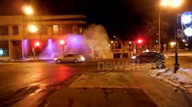 Footage of gallons of water bursting from a pierced water pipe in the streets of Montreal, Canada on Tuesday.