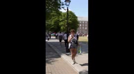 Footage taken in the Canning Town area shows a man standing on the towering crane from around 6am local time.