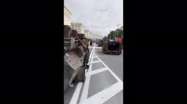 The procession held in Kyiv featured numerous heavily armoured trucks, missile launchers and tanks.
