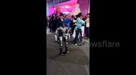 Two men stamp on each other's scooters during argument on road in China