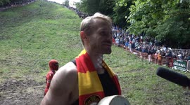 The special Jubilee event saw a number of injuries, including a suspected broken leg. Several men's and women's heats are held at the contest which took place on Cooper's Hill, one of the steepest hills in the UK.