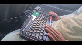 Footage shows Gu taking the joystick-controlled bed car outdoors for a fishing trip. He drives through moderately rough terrain to a nearby pond, all while bundled up comfortably in soft blankets and pillows.