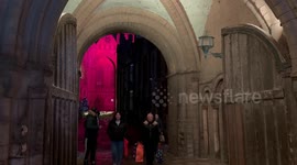 A protester was seen wearing a Matt Hancock mask while carrying a writing saying “I lied and children died" during a cost of living protest in London.