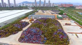 A dramatic video has emerged from China of the aftermath of two cars burnt into empty frames at a parking lot after one of them catching fire at dawn.