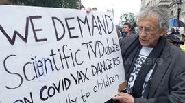 The North West Leicestershire MP was seen at the demonstration in central London, which was attended by hundreds of protesters seeking to bring attention to the vaccine injured.