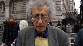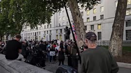 David Clews and James Harvey speak against the Ukraine War outside the UK US Embassyahead of a planned demonstration in Central London tomorrow.