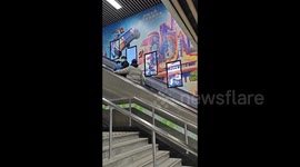 Citizens pass a video advertisement for the Ocean Park Aquarium on a subway in Shanghai, China, July 13, 2023. This is the Guangdong Zhuhai Chimelong International Ocean Resort in Shanghai giant screen "underground light corridor" to do the tourism promotion dynamic advertising, as the major cities in the summer into the high temperature weather, water park, sea world have become a hot summer travel time.