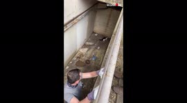 Slowly and steadily, Milos got the cat out of harm's way and set her free.