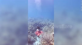Practising for hours in a pool, Nikki now takes to the ocean, exploring dive sites in her tail as she swims among the fish.