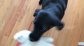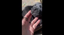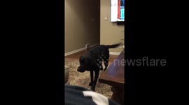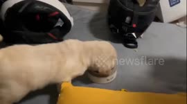 Money, a one-year-old black Labrador, was seen dipping its legs into a pond while being called by its owner.