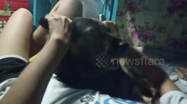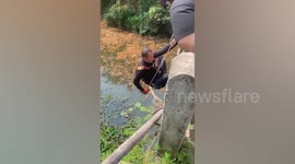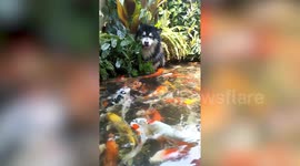 Footage shows Butsayamon Chaisri calling her pooch as she notices it gazing at her while its legs are in the pond in Prachuap Khiri Khan, Thailand, on January 24.