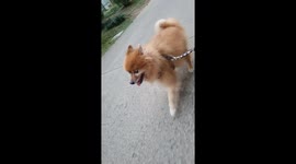 The sun was so nice that I went for a walk with my dog, but on the way back, the dog kept panting from the heat, which was both cute and pitiful."