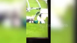 On June 25, 2024, in Romblon, Philippines, @makemeralph shared a video capturing a performer falling offstage during a folk dance performance but quickly recovering to resume dancing.