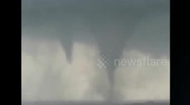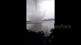 The phenomenon occurs when water is drawn into the vortex's base due to extreme pressure drops at the tornado's centre, forming an upward-spiralling water column.
