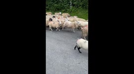 A farmers Sheep and Lambs are walking down a road as they are moved to another field. Making Sheep noises (Baa) Filmed in 4k in portrait.