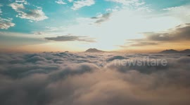 Landscape view of gloomy Sunrise over the cloud in Manungkot hill, Tanahun, Nepal