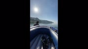 Woman singing while in the boat in the very calm beach in the philippines
