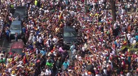 SHOTLIST GUATIRE, VENEZUELA (JUNE 29, 2025) (ANADOLU – ACCESS ALL) 1. VARIOUS OF PEOPLE DANCING IN TRADITIONAL COSTUMES 2. STATUE OF SAINT PETER CARRIED THROUGH STREETS 3. VARIOUS OF PEOPLE CELEBRATING INSIDE CHURCH GUATIRE, VENEZUELA - JUNE 29: The Parranda de San Pedro festival was joyfully celebrated on Sunday, June 29, across Venezuela’s Miranda state, particularly in the cities of Guatire and Guarenas, as well as in the Sarria neighborhood of Caracas. The Parranda de San Pedro, recognized by UNESCO as Intangible Cultural Heritage, brings thousands together to honor promises, dance the "Sebucan," and sing of faith and tradition. Participants wear bright frock coats, ribboned "pumpa" hats, and blackface, reflecting Afro-descendant heritage.