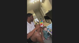 Dad holds newborn baby talking to him and telling him it’s okay & immediately gets stunned by babies burp