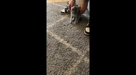 It shows 2 kittens being reunited giving each other nose bumps. We adopted the first grey kitten and decided she needed her sister who was struggling to be adopted