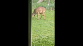 This cute baby buck has been living on the land we live and eating all our veggies garden green but we love him - so cool watching him grow up with my son - life and nature as education