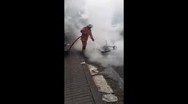 MOTOR ON FIRE BLOCKING THE ROAD