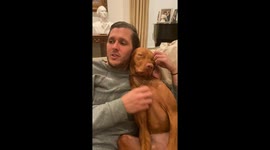 Exclusive- Dog or roommate? Velcro vizsla goes viral for sleeping like a literal human