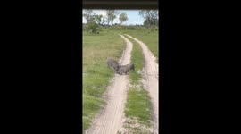 Witness a clash of tusks and wills in the heart of the wild. Two massive warthogs erupt into a staggering display of strength, shoving and locking jaws in a gritty, dust-churning battle for supremacy. #wathog #wildanimals #wildlife