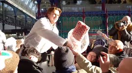 Every Xmas Eve Londons oldest market celebrateswuth a public meat auction. Excited Londoners decsend at 10am to grab Xmas bargins. Turkeys sell for £10, whole smoked hams for £20 in a spirit of fun and classic Cockney humour.